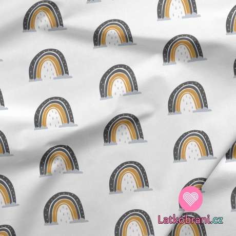 Teplákovina potlač okrová-antracitová dúha s kvapkami dažďa