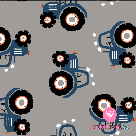 Úplet potlač modrej traktory na šedej