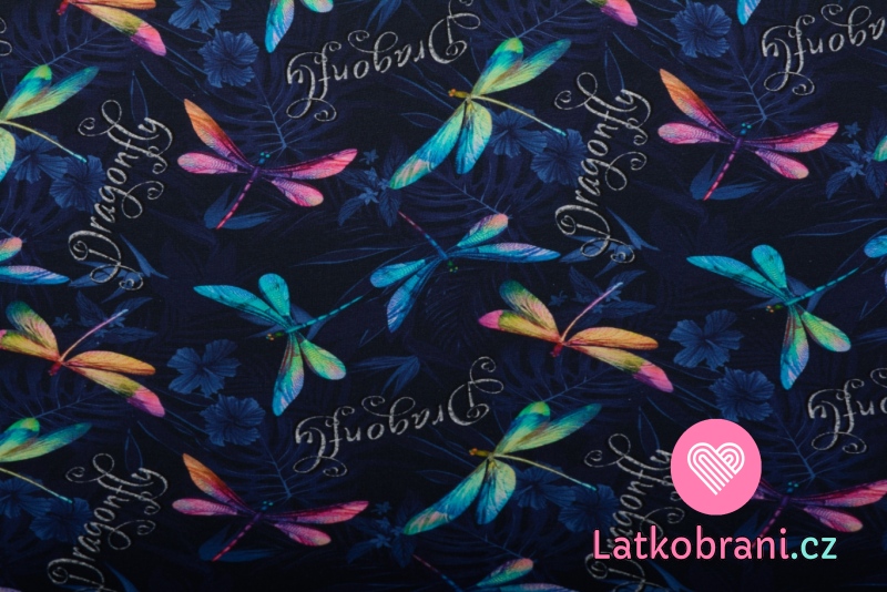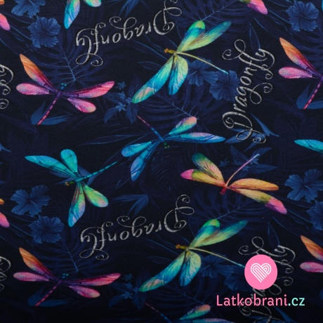 Úplet potlač dúhové vážky na tmavo modré 180 g