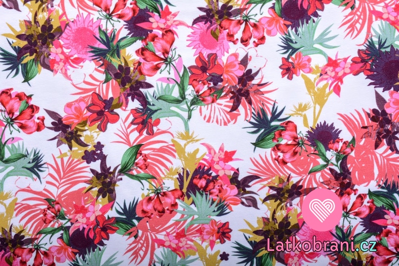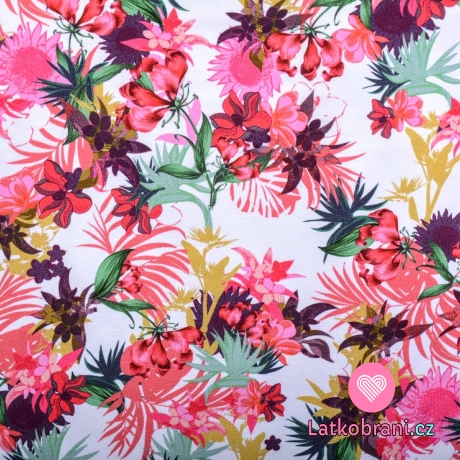 Úplet potlač pestré kvety ALOHA leto na biele