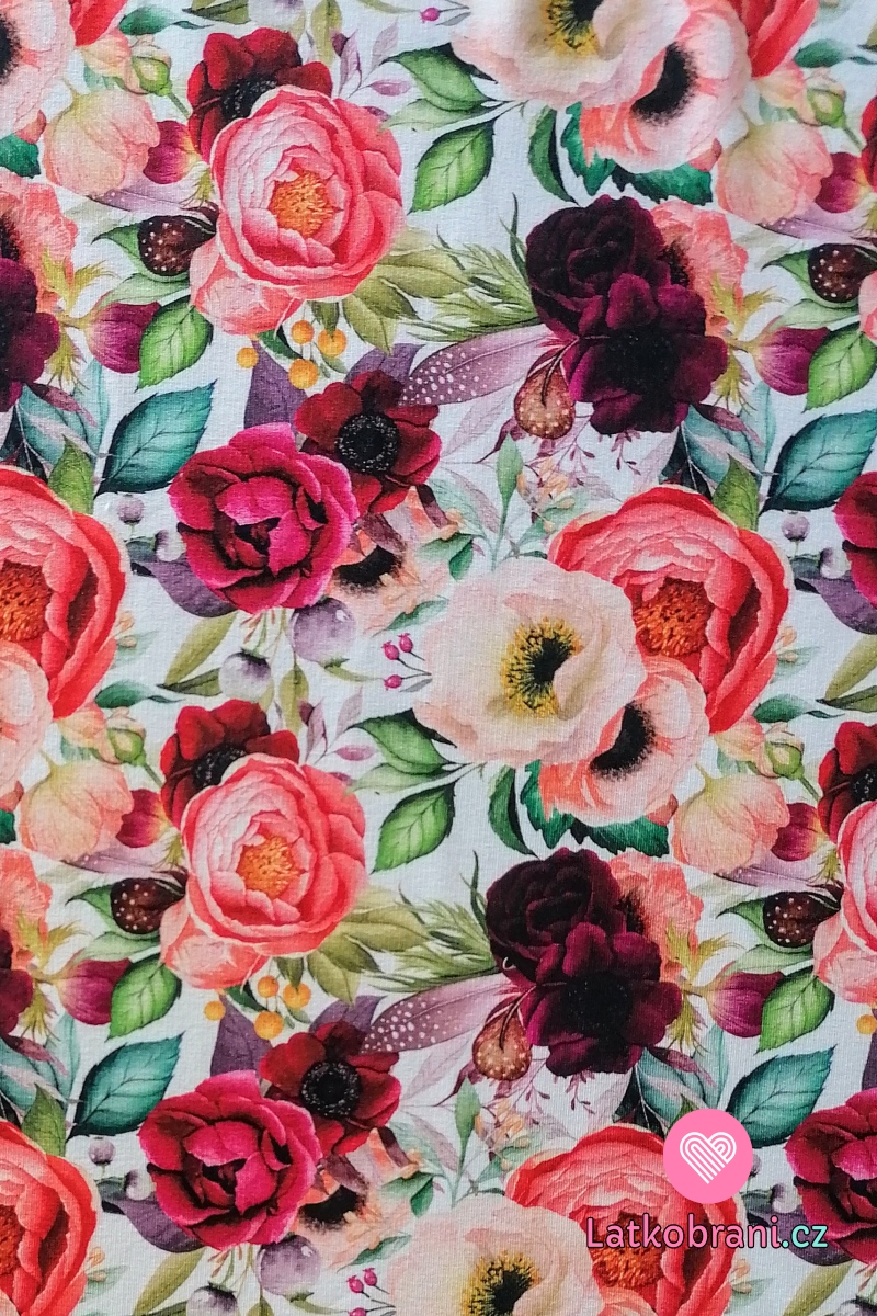 Úplet potlač farebné kvety ruží s listami na bielej