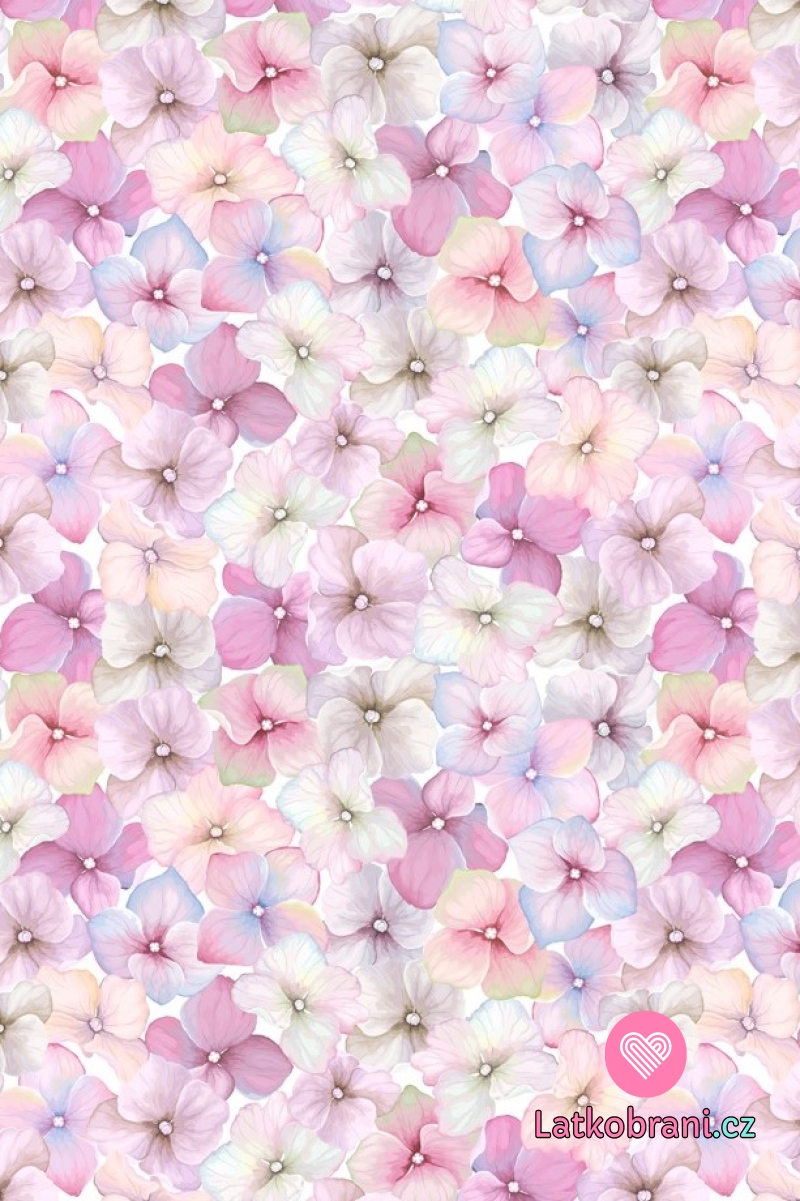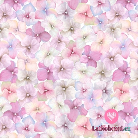 Teplákovina potlač ružovobiela kvietky hortenzie
