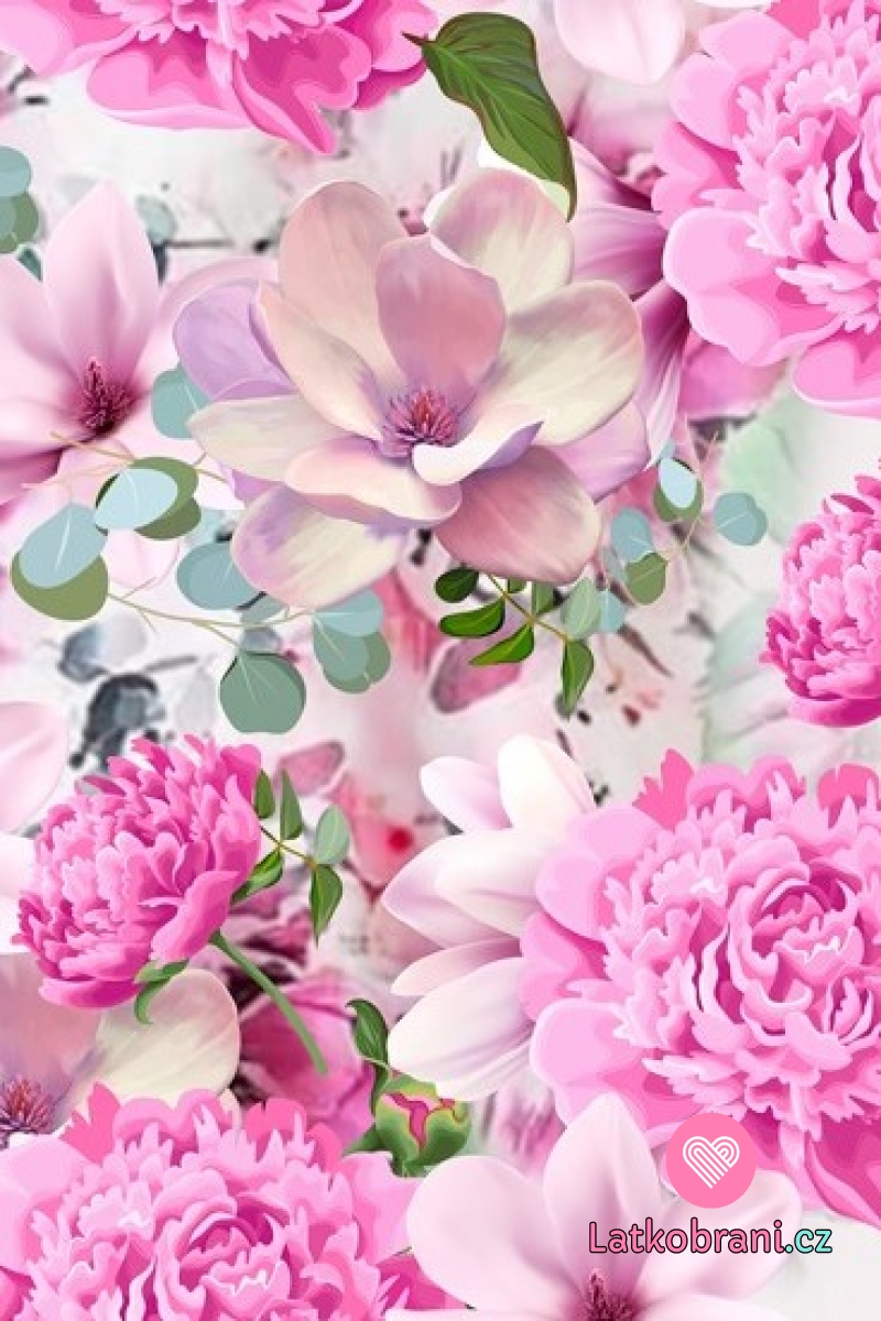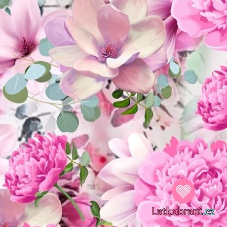Teplákovina potlač ružovej magnólie a pivonky