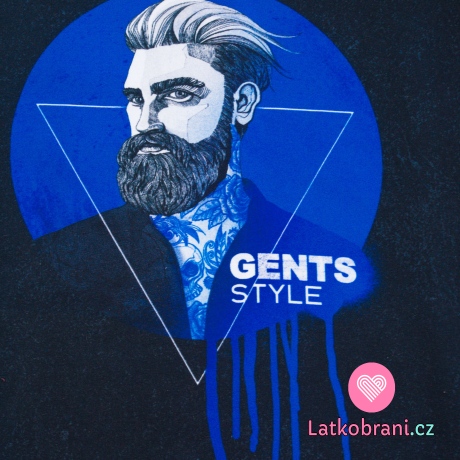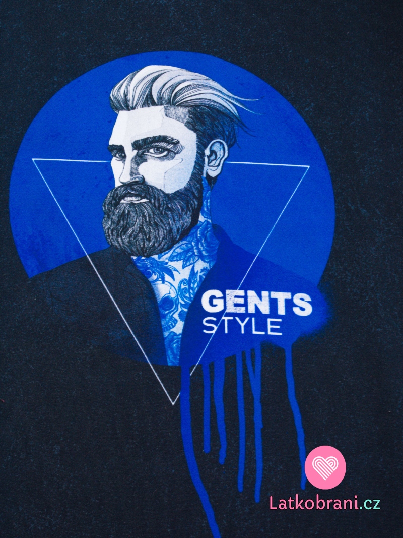 Teplákovina panel fúzatý Džentlmen v kruhu na modrej
