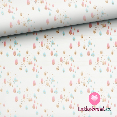 Teplákovina potlač trblietavé kvapky dažďa v pastelových odtieňoch na biele do Smetanova
