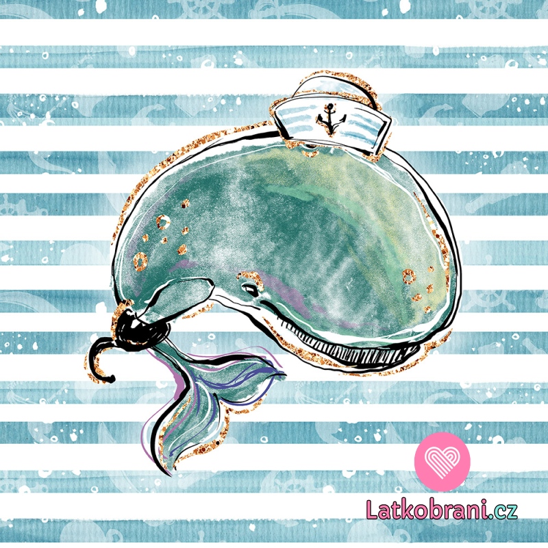 Panel teplákovina veľryba na modrotyrkysových prúžkoch