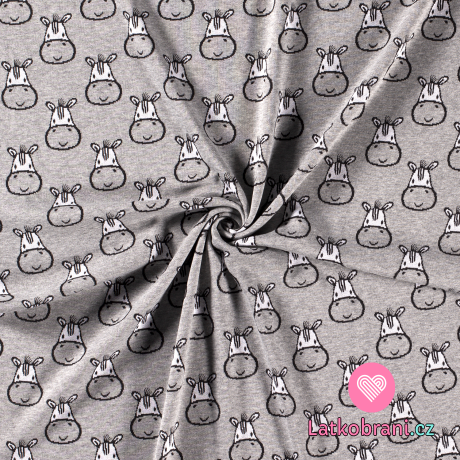 Pletený žakár hlavičky zebry na šedom melé
