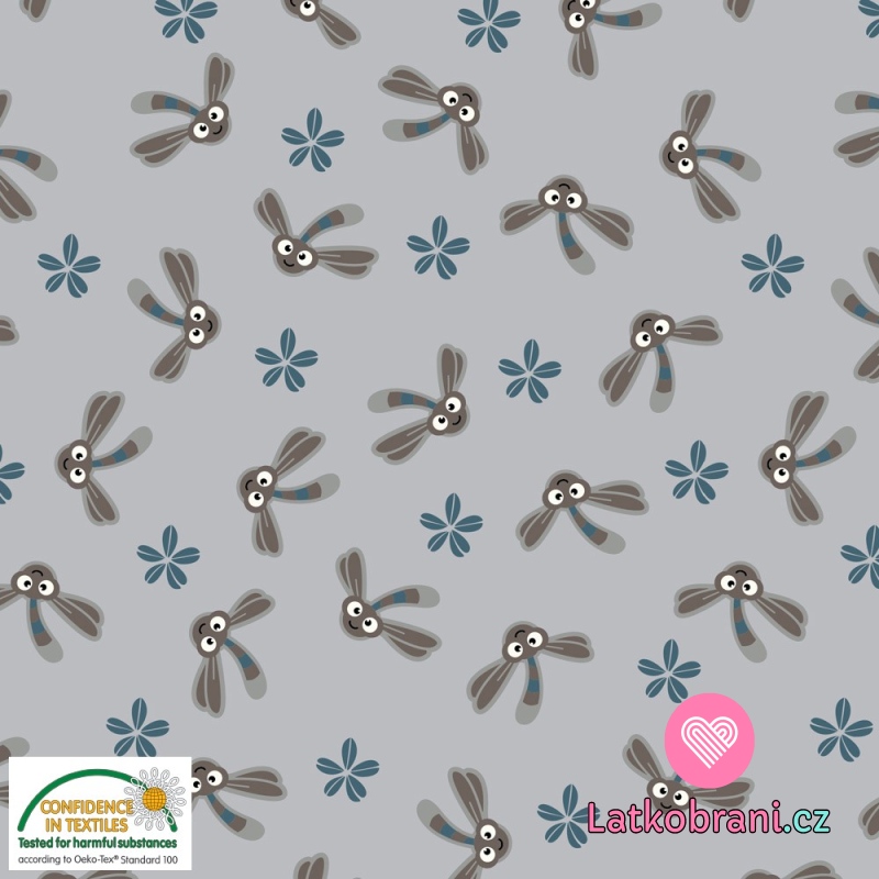 Úplet roztomilé vážky medzi kvietky na šedej