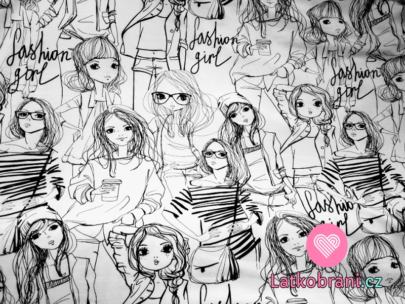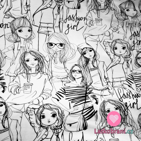 Úplet potlač čierny na biele Fashion girl 160 g