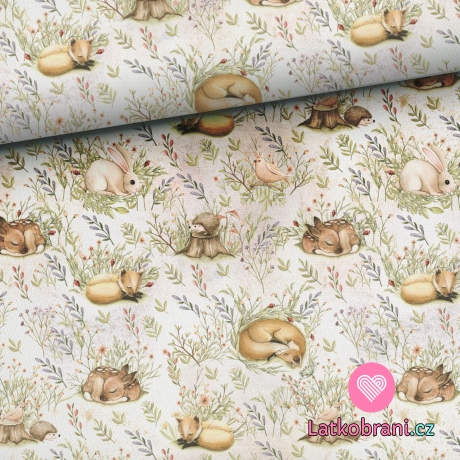 Teplákovina potlač zvieratka spiace na rozkvitnutej lúke