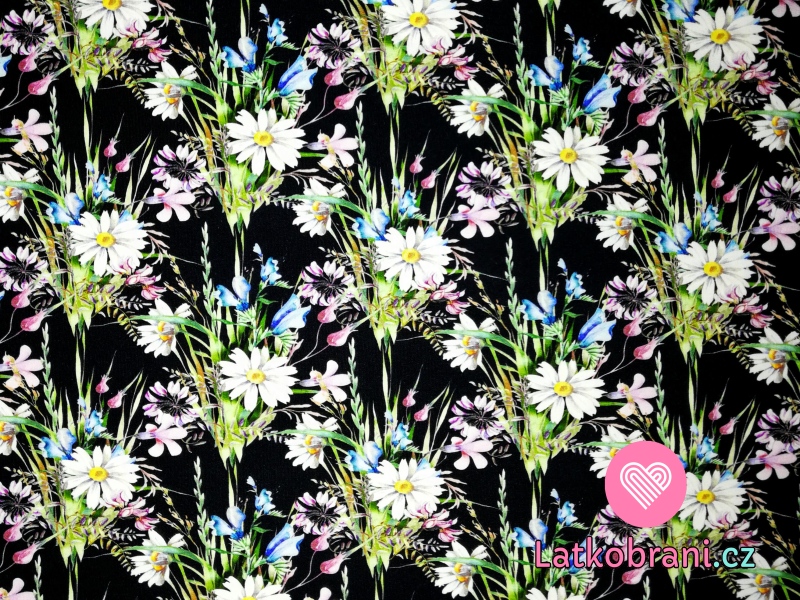 Teplákovina potlač rozkvitnutá letné lúka na čierne
