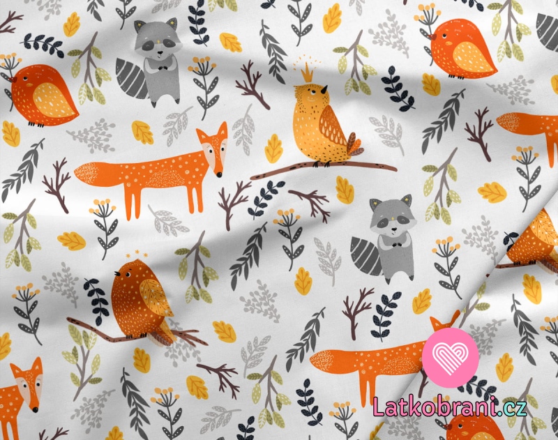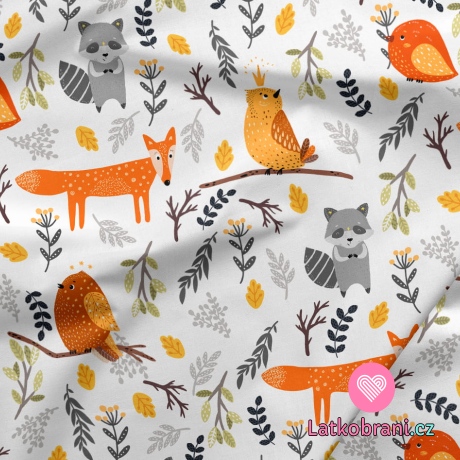 Teplákovina potlač zvieratka medzi vetvičkami na biele