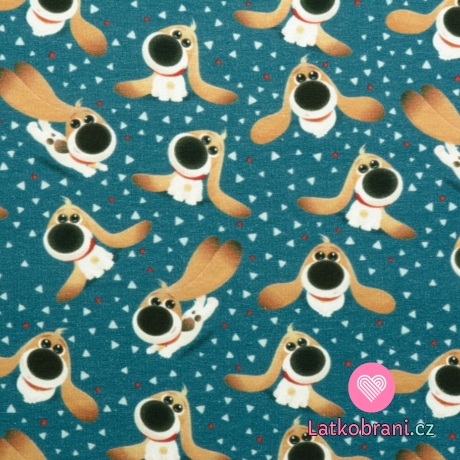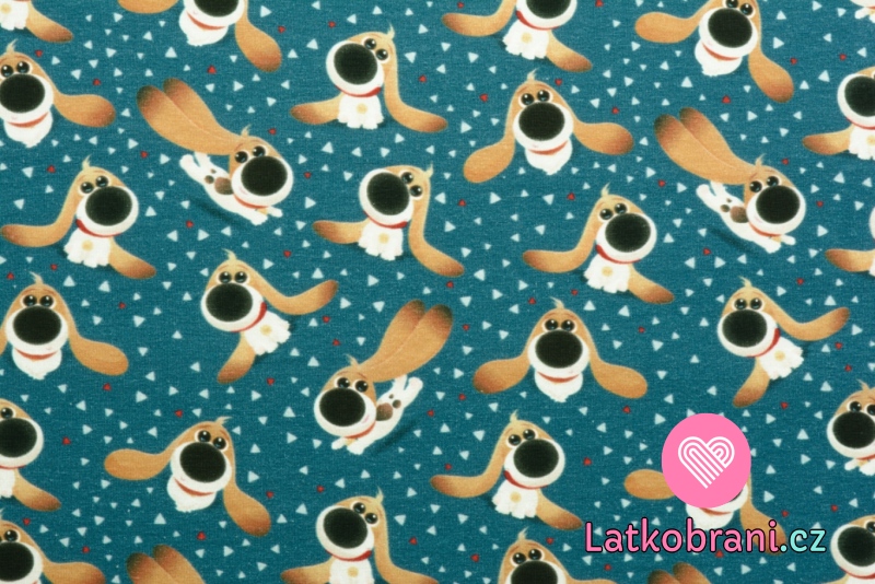 Úplet potlač roztomilá šteniatka s dlhými ušami na modrej