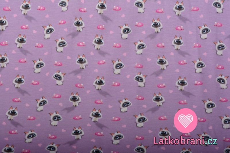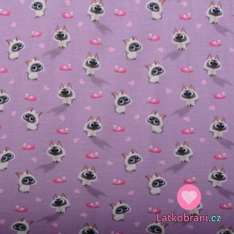 Úplet potlač roztomilá mačiatka a myšky na ružovo-fialové