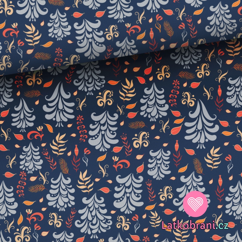 Teplákovina potlač čarovný les na tmavo modré