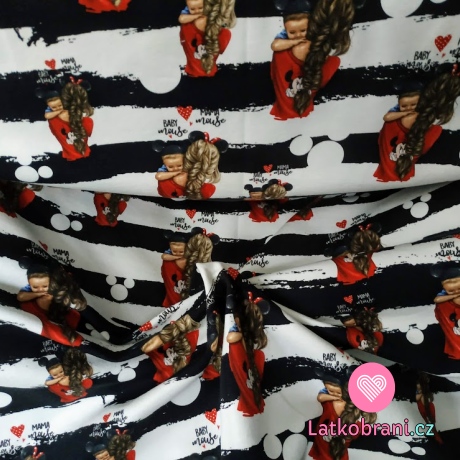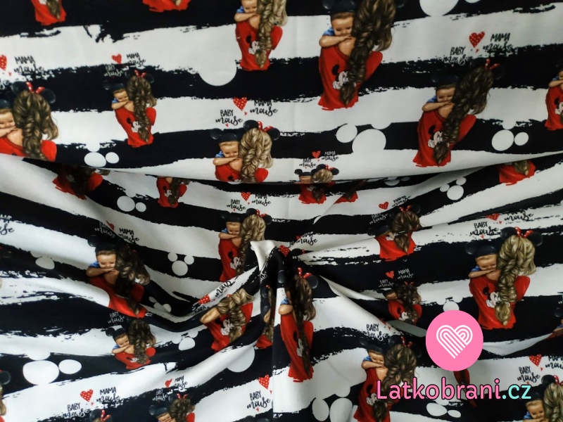 Teplákovina potlač mamička so synom na bielo - čiernych prúžkoch