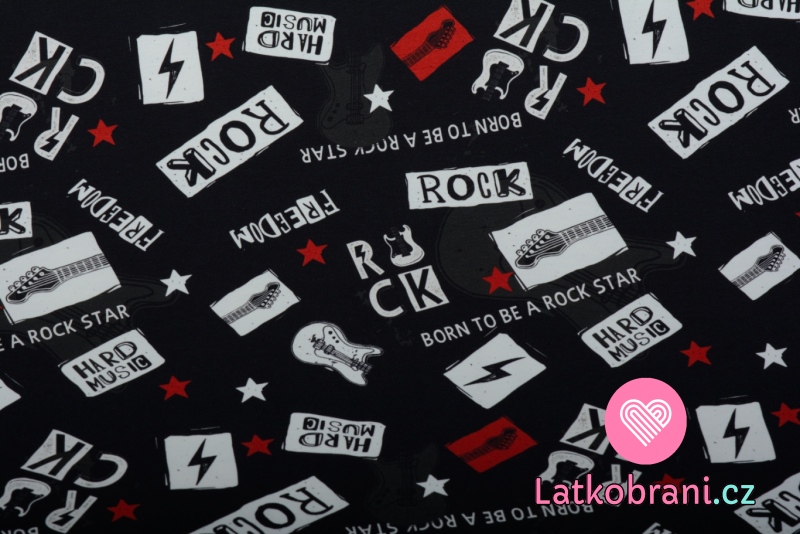 Úplet potlač rock style nápisy a hudobné nástroje na čiernej