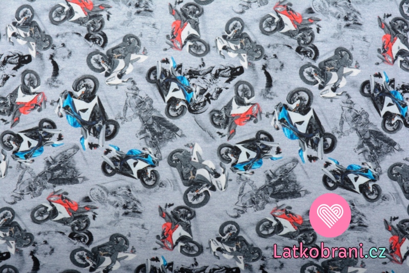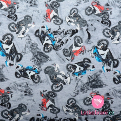 Teplákovina potlač farebné motorky na šedé
