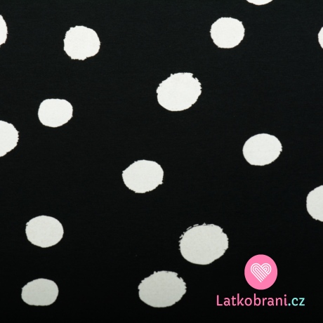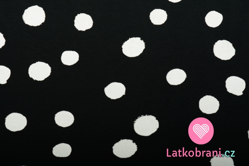 Úplet potlač nepravidelný veľký bodka biely na čierne 160 g