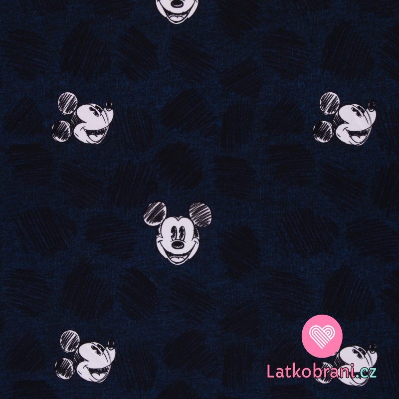 Teplákovina Mickeyho hlavičky medzi šrafovanými bodky na tmavo modré