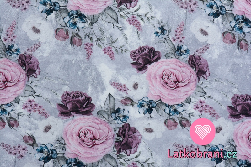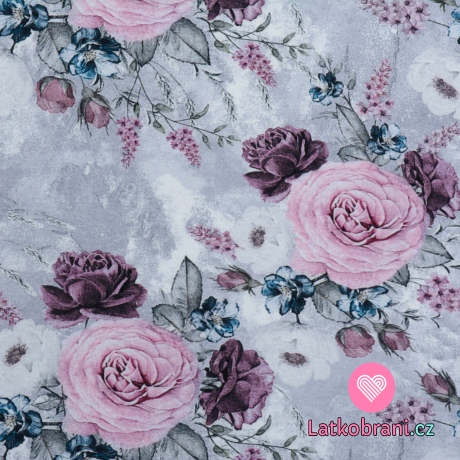Úplet potlač romantické ruže na šedo - bielom podklade