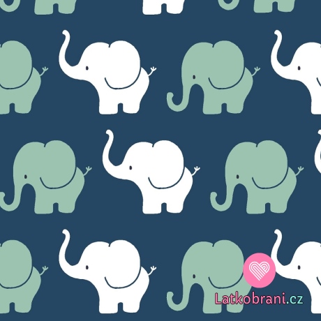 Úplet potlač slonie sprievod na modrej