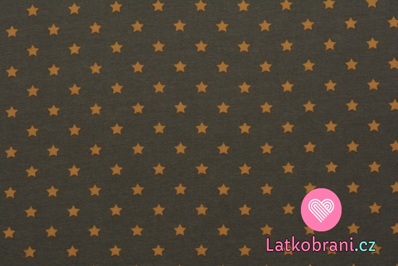 Úplet potlač drobné horčicovej hviezdičky na šedej