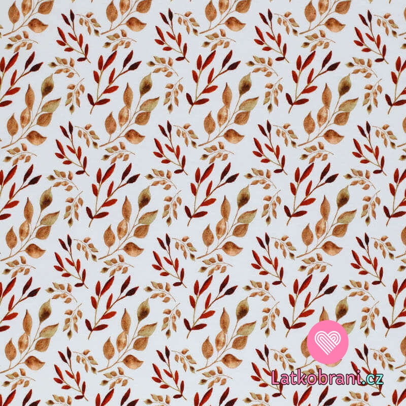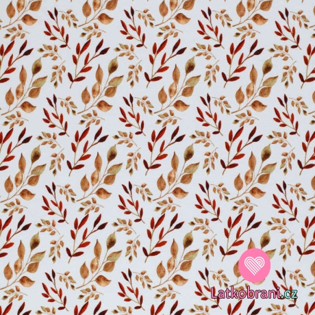 Úplet potlač jesenné vetvičky s lístkami na bielej