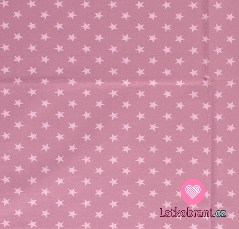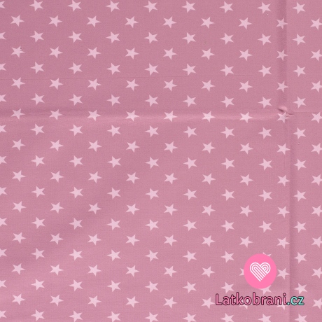 Teplákovina potlač svetlo ružové hviezdičky na staroružovej
