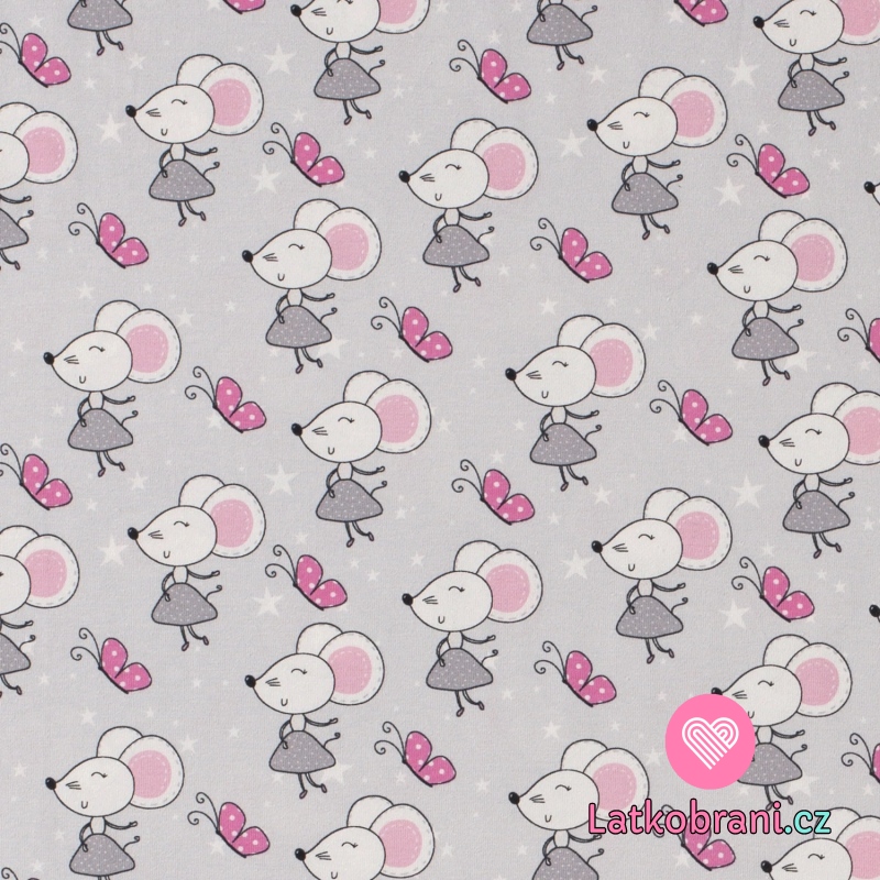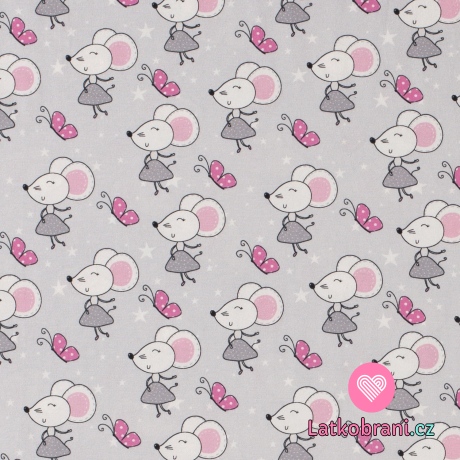 Úplet potlač myšky v sukýnkách na šedej