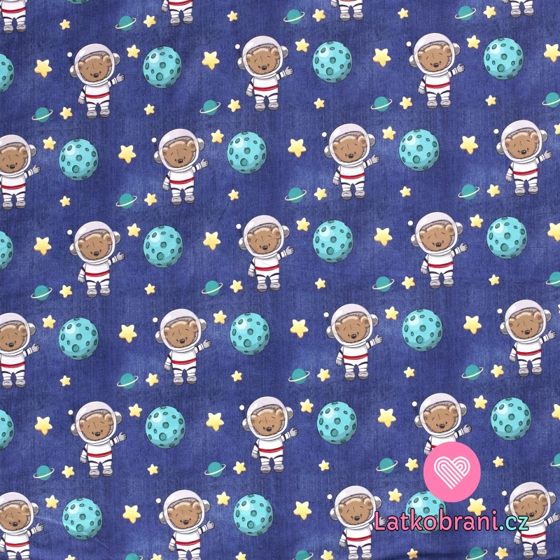 Teplákovina potlač medvedík kozmonaut na modrom jeans