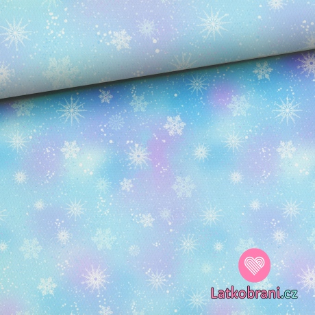 Teplákovina potlač snehové vločky na dúhovom podklade