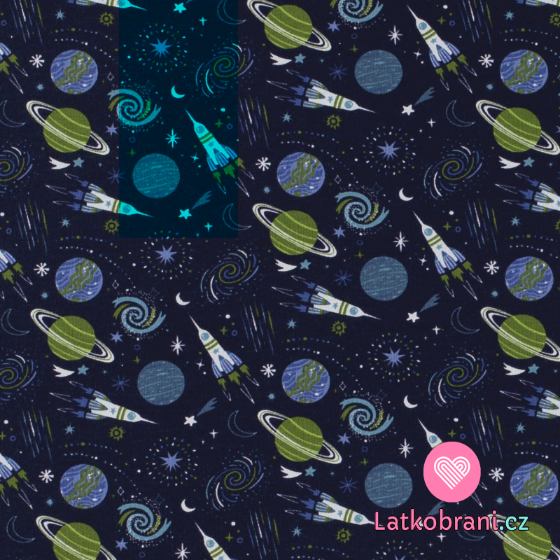 Úplet potlač vesmírnej rakety medzi planétami na námorníckej modrej