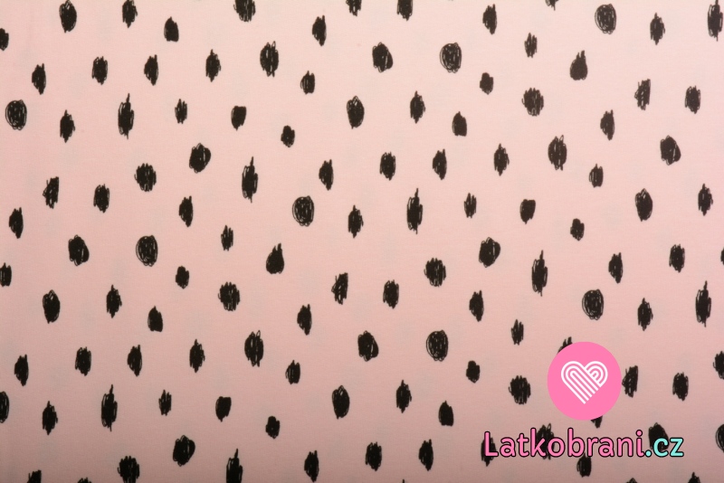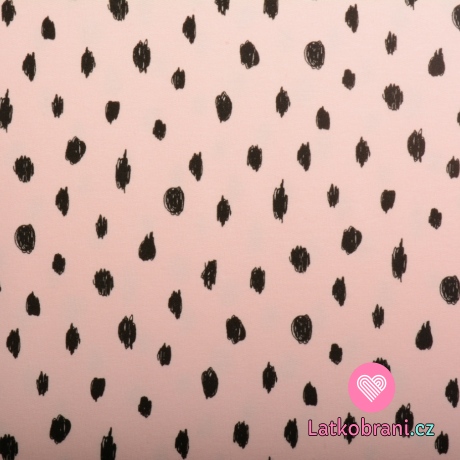 Teplákovina počesaná nepravidelné čierne bodky na ružové