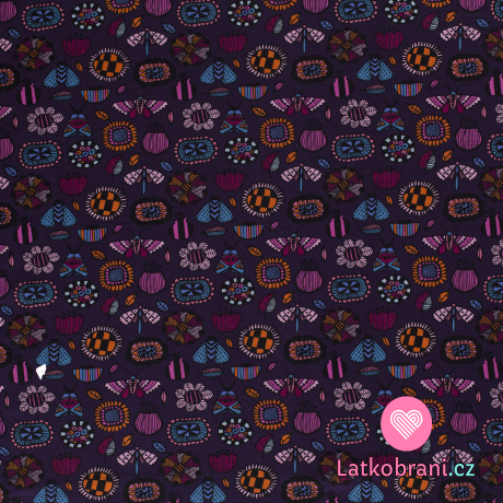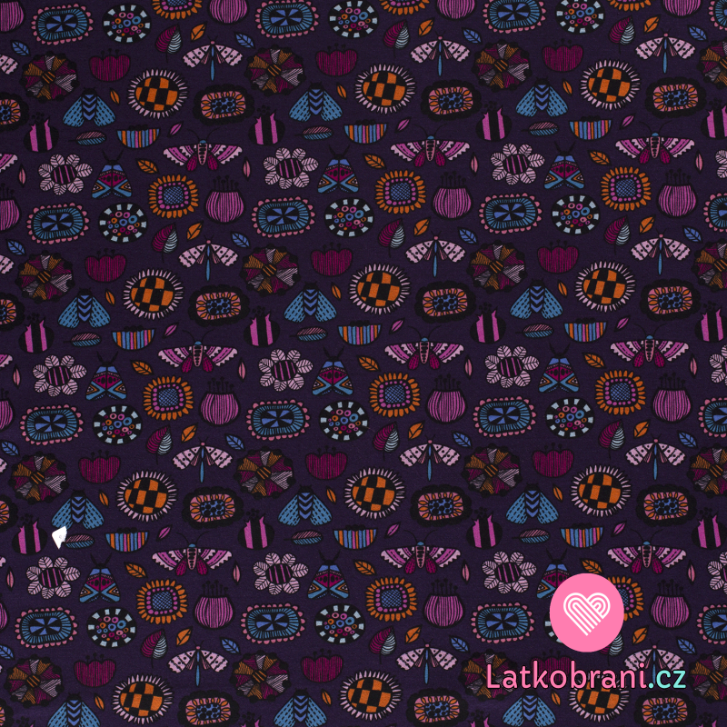 Warmkeeper potlač motýle, vážky a chrobáčiky medzi kvietky na tmavofialové