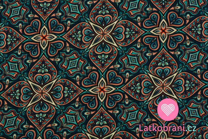 Teplákovina potlač žiarivé ornamenty na modrej