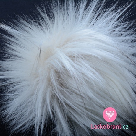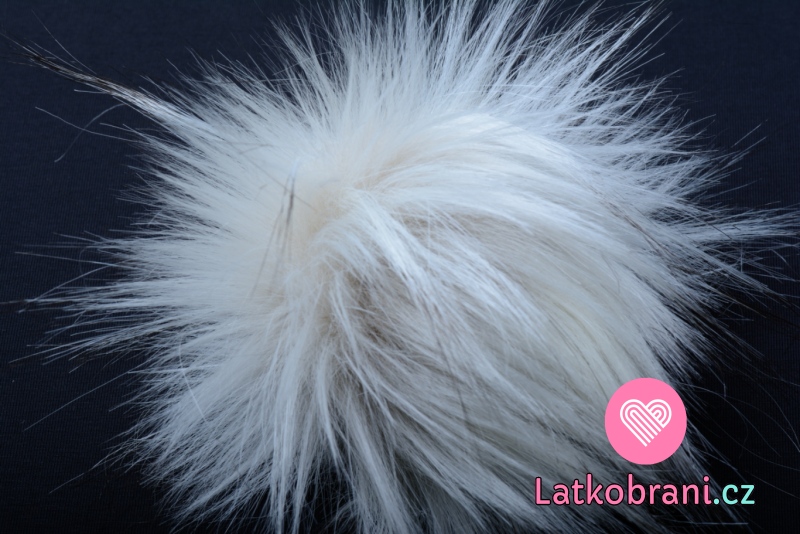 Brmbolce na čiapku biela, čierne konce - dlhý chlp