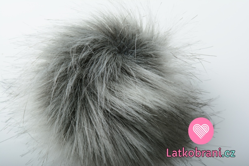 Brmbolce na čiapku sivá, biele konce - dlhý chlp