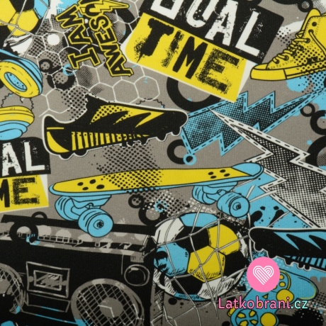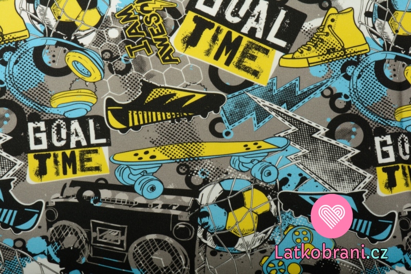 Teplákovina počesaná potlač "Goal time" na šedej