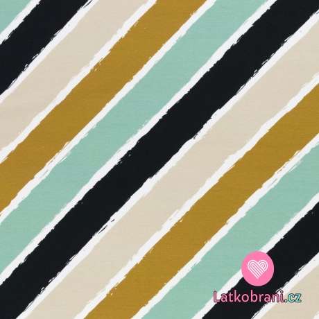 Teplákovina potlač šikmé pruhy v jesenných farbách