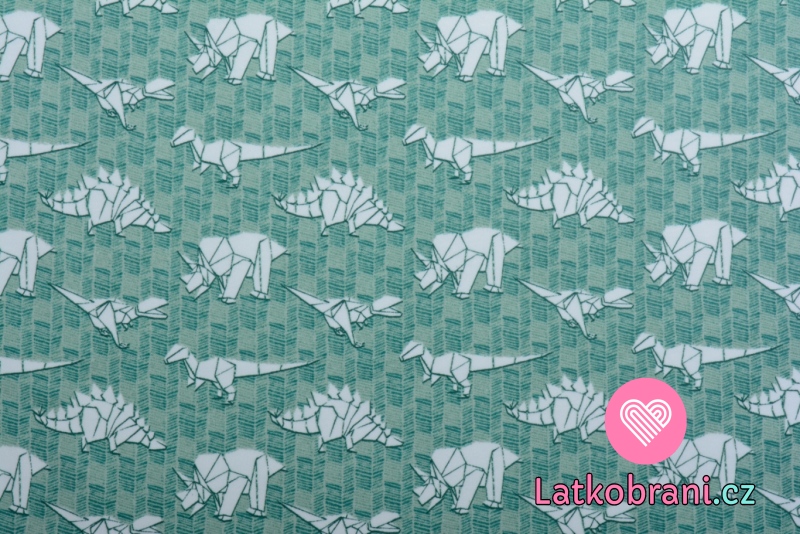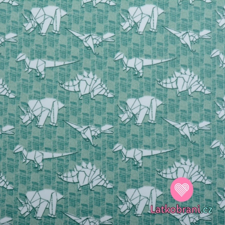 Teplákovina počesaná potlač dinosaurie origami na zaprášené zelenej, BIO