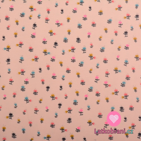 Úplet potlač jemné rozkvitnuté kvety na ružové