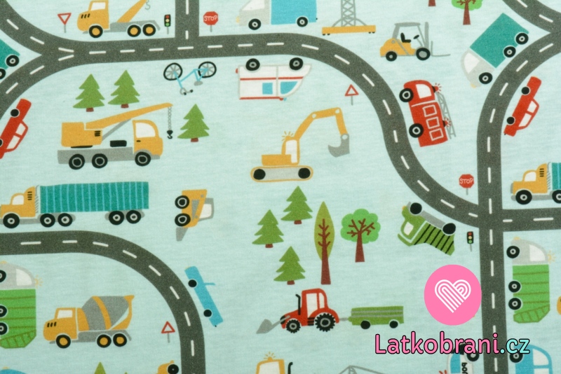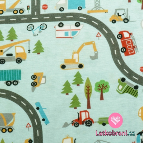 Bavlnený úplet dopravné prostriedky na ceste na modrej