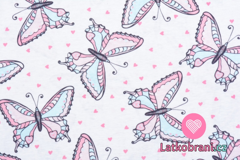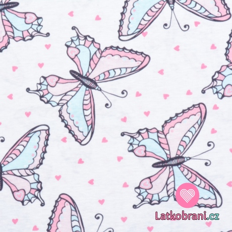 Bavlnený úplet motýle v pastelových farbách na bielej