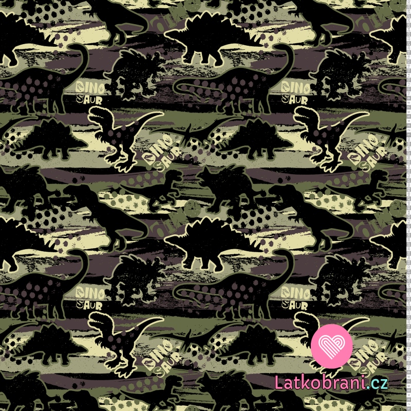 Teplákovina počesaná potlač dinosaury na "kamufláži"