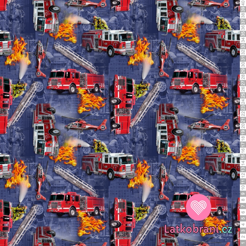 Teplákovina potlač hasiči v akcii na šedo - modré