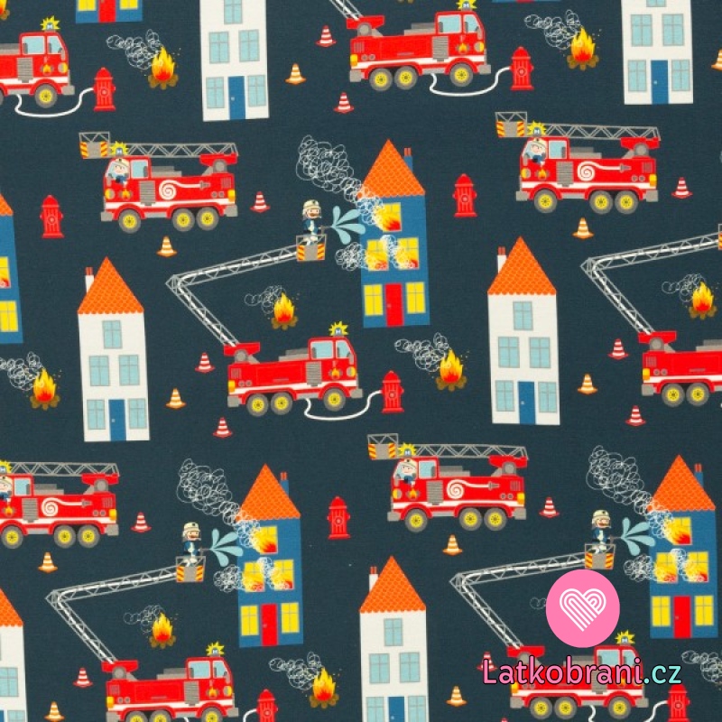 Teplákovina potlač hasiči pri práci na tmavo modré