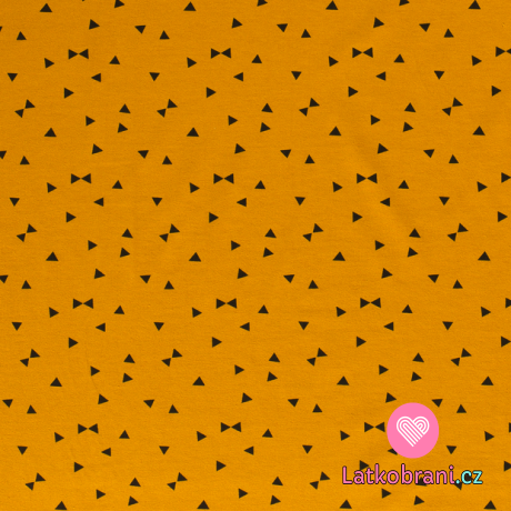Úplet potlač drobné čierne trojuholníčky na horčicovej