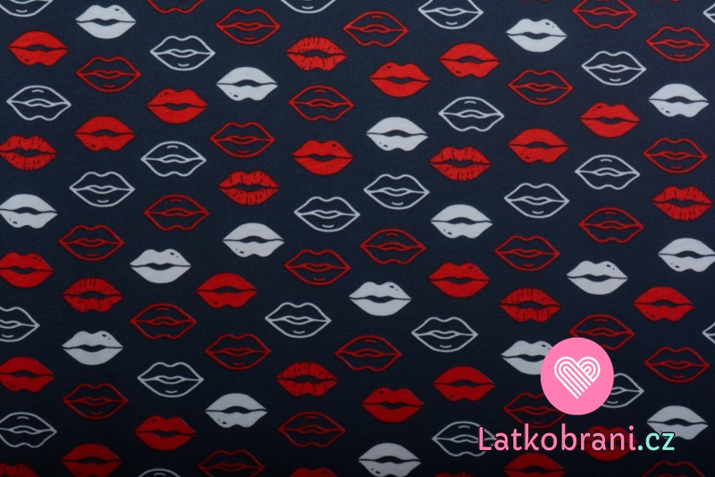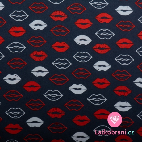 Bavlnený úplet obtisk pier na modrej
