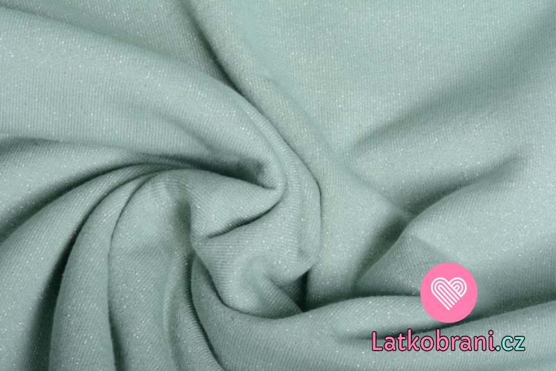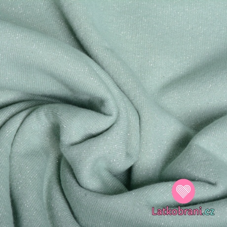 Teplákovina počesaná starozelená s trblietavými nitkami